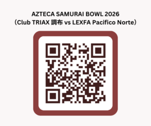 当法人は、昨年より、東京都調布市を拠点とする社会人アメリカンフットボールチーム「Club TRIAX調布」(X1リーグ所属)をサポートしておりますが、この度、同チームがメキシコチームとの国際親善試合を開催しましたことをご報告致します。当日の熱戦の様子は下部のリンク先またはQRコードよりご覧頂けます。